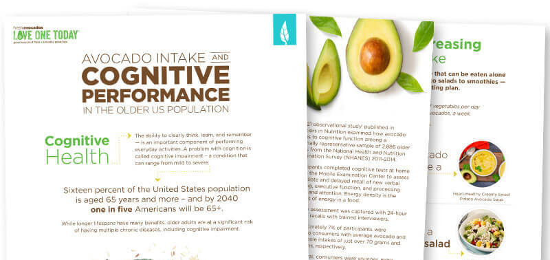 Emerging research supported by the Avocado Nutrition Center explores the relationship between eating fresh avocado and brain health benefits. Conclusions cannot be drawn from a single study or generalized to all populations. Observational data does not show cause and effect.