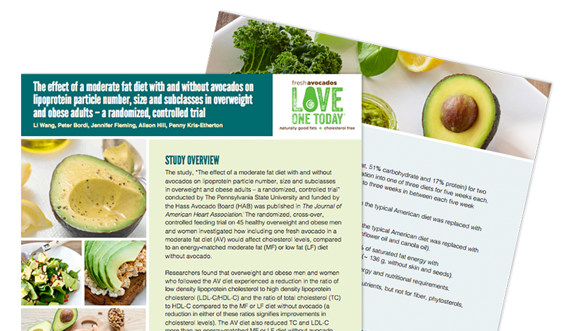 Find nutrition research on the benefits of avocados for cardiovascular health, weight management, type 2 diabetes, and healthy living at every age