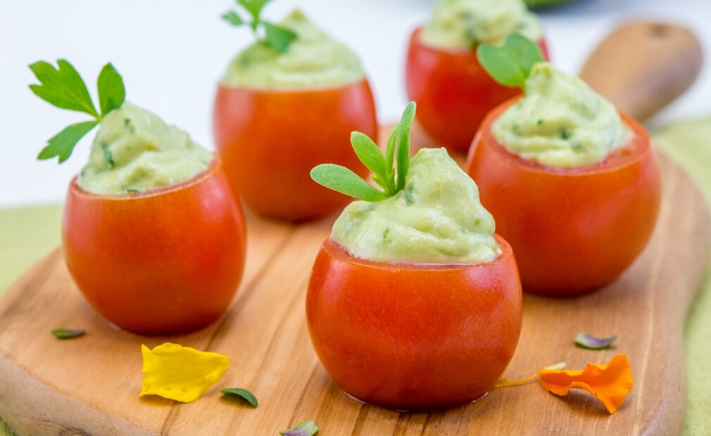 Your low-carb-loving guests will be keen on these Heart-Healthy Chipotle Avocado Stuffed Cherry Tomatoes. Just prep the tomatoes the night before and fill with the avocado filling the following day for a delicious and quick avocado recipe.