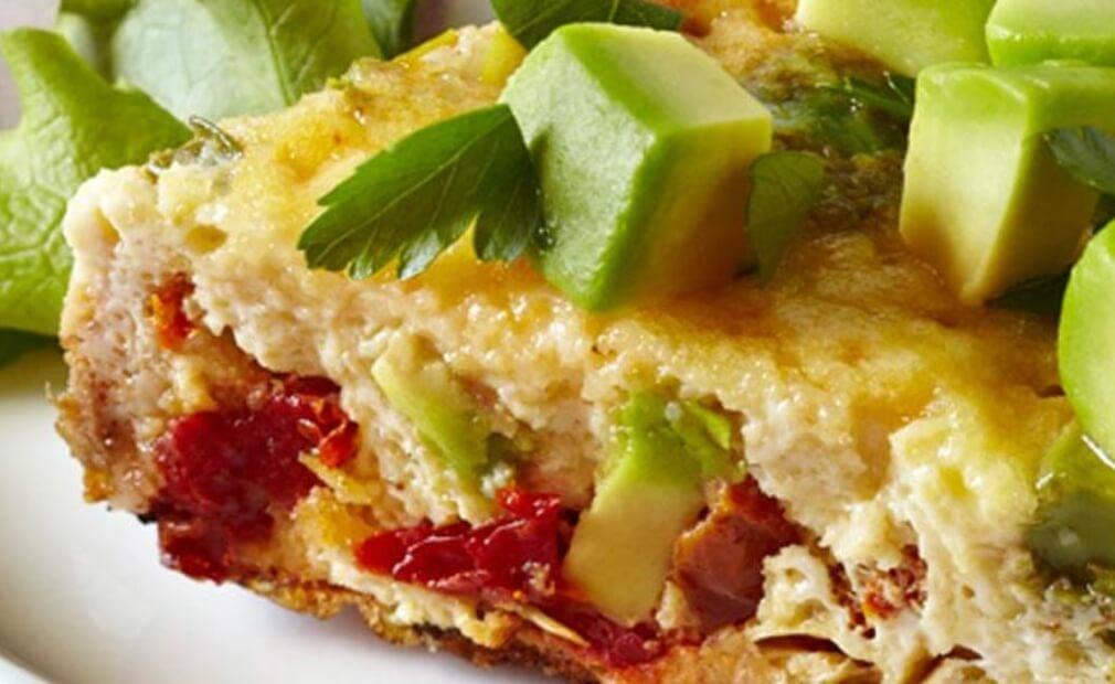 Avocado, Artichoke, and Sundried Tomato Frittata – This flavorful dish can also be made the night before and served warm or cold.