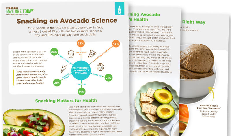 What’s Inside: This free fact sheet breaks down new research on avocado as a nighttime snack and what it could mean for heart health —plus quick recipe ideas you can pass along to patients or try yourself. Enjoy 🥑
