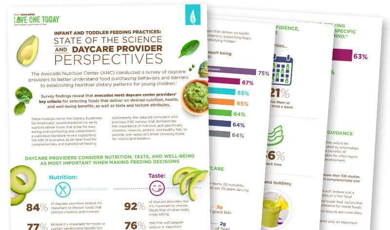 What’s Inside: Available also in Spanish. The Avocado Nutrition Center (ANC) conducted a survey of daycare providers to better understand food purchasing behaviors and barriers to establishing healthier dietary patterns for young children.