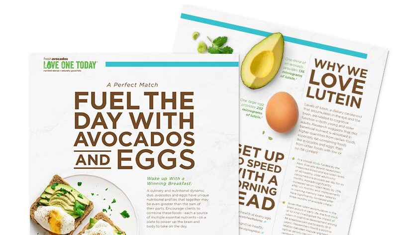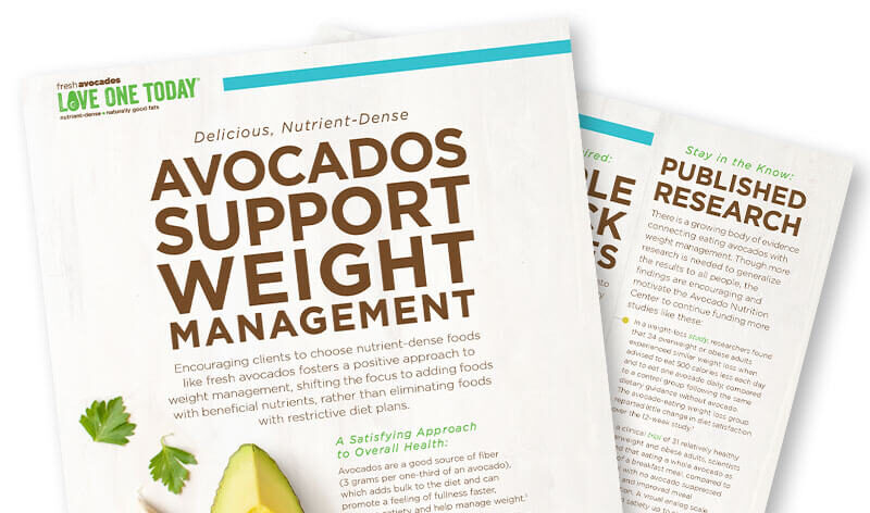 What’s Inside: Avocados can make weight management strategies easier and more delicious. This useful fact sheet is a one-stop shop for tips, research and recipes.