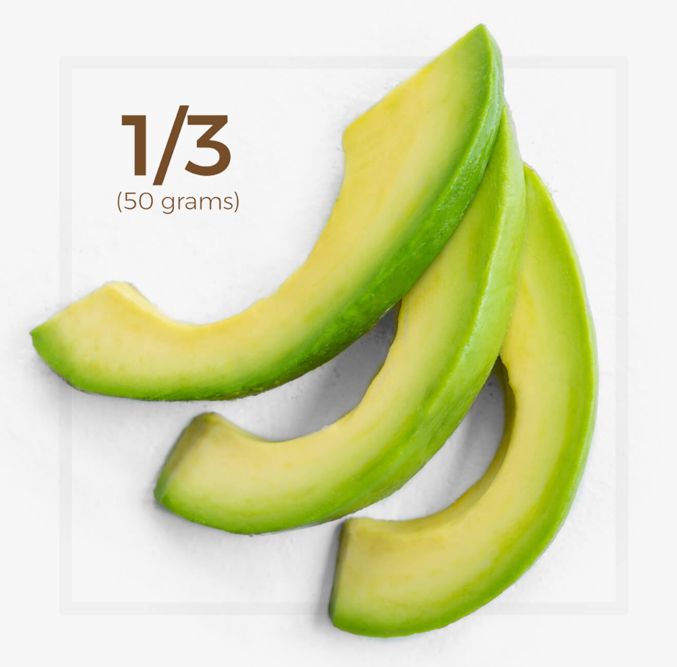 For example, one-third of a medium avocado (50 grams) has 80 calories and contributes nearly 20 vitamins and minerals, making it a healthy, nutrient-dense food choice.