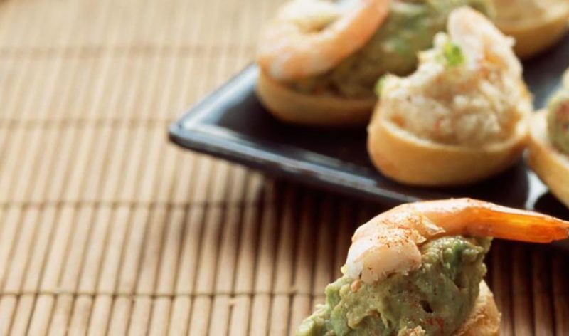 Bite-sized rolls topped with a dollop of guacamole and tangy lemon-pepper shrimp make an easy and delicious way to start off your party.