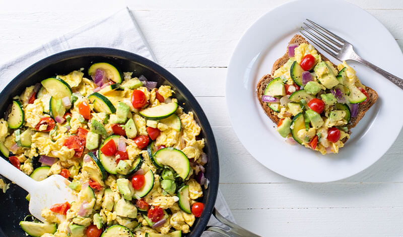 To get you on the road to high-energy eating, here is a nutrient-packed breakfast recipe for Avocado and Veggie Scramble.