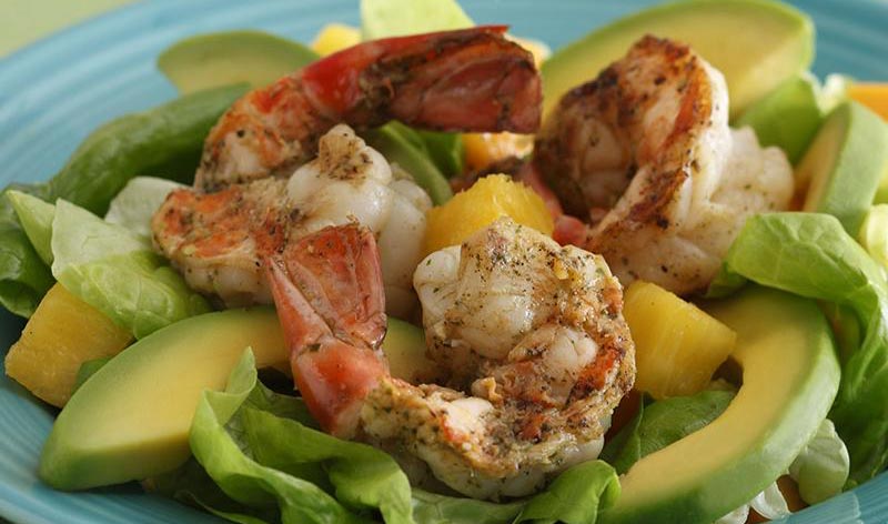 Tropical Salad with Avocado and Grilled Shrimp