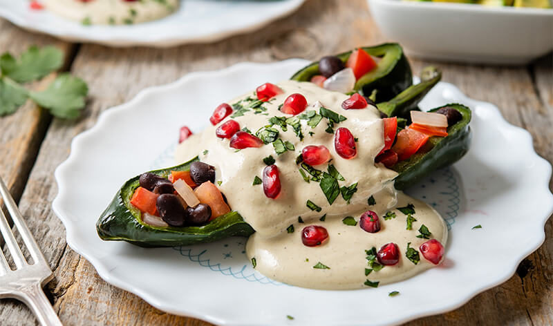Enjoy this creative spin on a traditional Mexican favorite. The fresh avocado added to the signature walnut-based sauce replaces some conventional saturated fat ingredients and […]