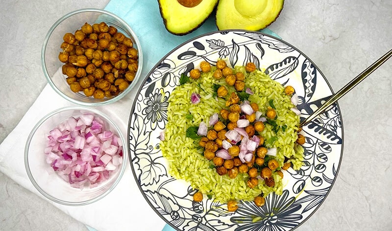 Avocado Cilantro Lime Rice with Crunchy Chickpeas