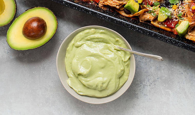 Fresh avocados, Greek yogurt, and lime juice come together to create this easy-to-make and delicious avocado crema. Use it as the perfect dipping sauce or salad dressing for a quick and smooth boost of nutrition.