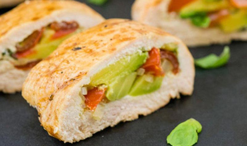 This baked chicken dish is served with a delicious avocado blend inside for a tasty lunch or dinner entrée.