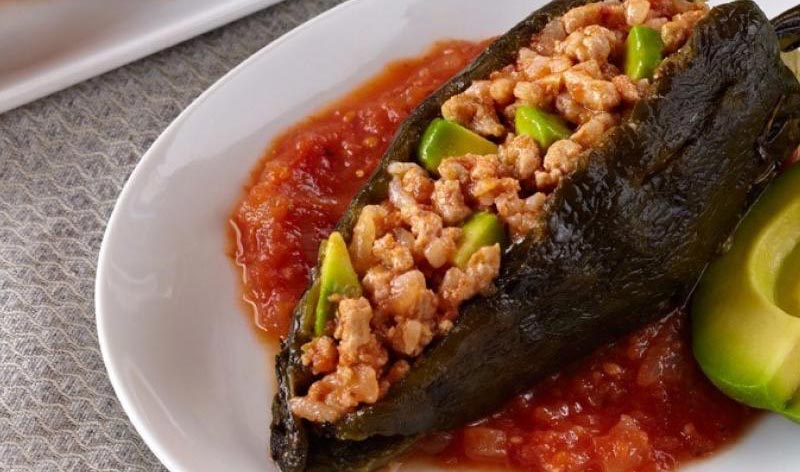 Ground pork, spices, rice and avocado stuffed poblano pepper with a creamy chipotle sauce.