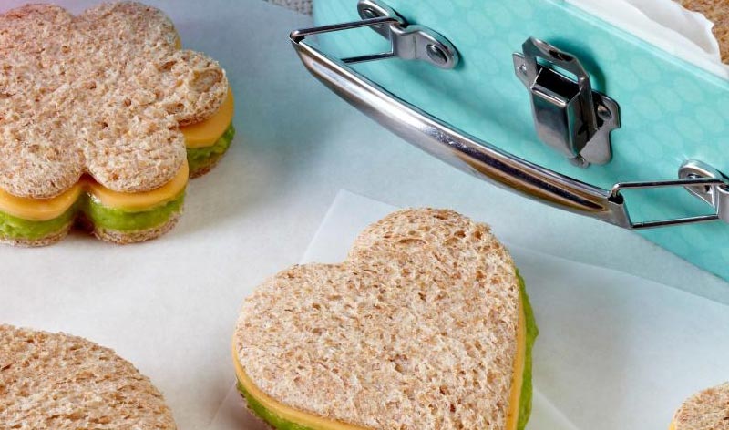 - Use various sizes and shapes of cookie cutters to cut out mini sandwiches.