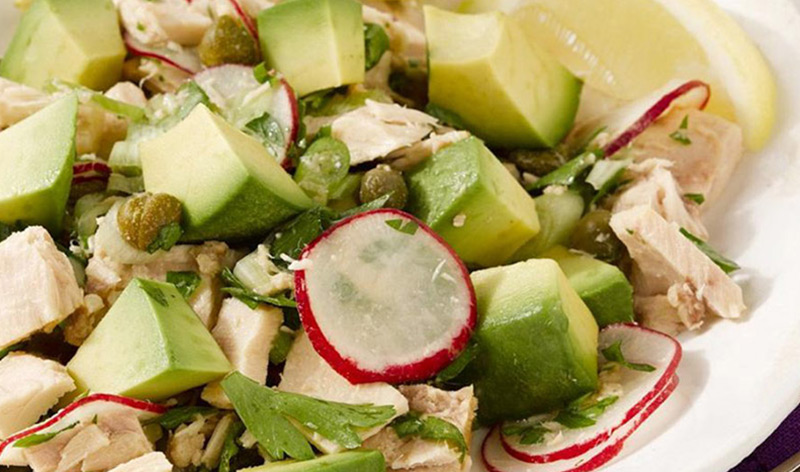 This protein-packed salad contains a delicious balance of creamy and crunch tossed in a light dressing for a quick meal.