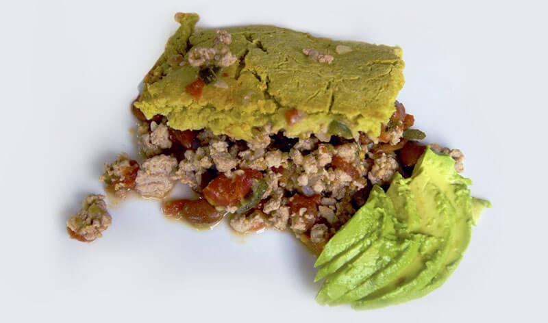 - Pour mixture in a baking dish, sprinkle cilantro and transfer the masa over the mixture. Bake for 20-25 minutes at 400 degrees until golden brown. Remove from oven and let it stand 5 minutes before cutting into squares.