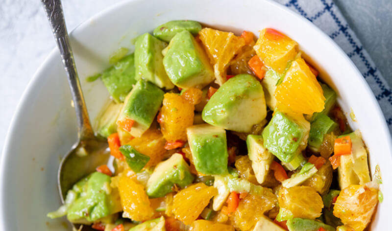 Fresh oranges pair with avocados for a pretty, sweet citrus salsa with a little kick from red jalapeños.